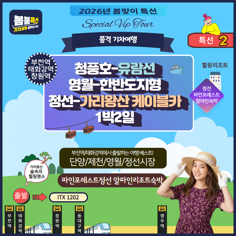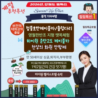 329,000원 ~ 2026년 봄여행 단양과 강원도 힐링여행 부전역과 태화강역 출발 강력추천일정입니다.