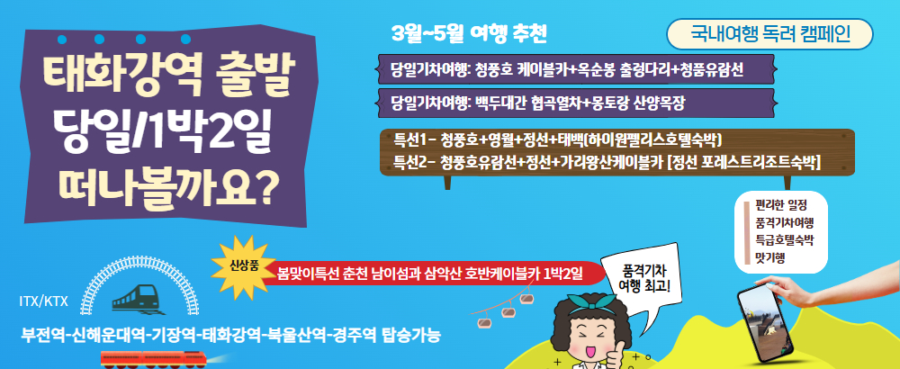 이젠 부산/울산/경남에서도 동해바다를 경유하는 기차여행이 가능합니다, 단 1일...